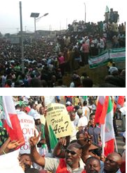 The Nigerian Nation was indeed shut down today Monday 9th January 2012 by a Nationwide Strike Action led by the Nigerian Labour Congress NLC and The Trade Union Congress TUC who were joined by various Civil Society groups in the action. The protest was to register the wide spread disapproval of the Nigerian citizens over the removal of fuel subsidy by the Jonathan Government on 1st January 2012 which resulted in the price of petrol moving up from N65 to N140 per liter. All Airports, Sea Ports, Markets government offices etc were shut down across the country. Rallies and demonstrations in virtually all the state Capitals notably in Lagos and Abuja were broadcast live on the main local television.